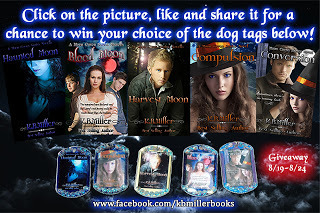 Now... what could you win for reviewing a FREE ebook, check out the picture! 1 lucky winner will receive A Proud Member of the Moon Coven t-shirt, a signed print of Haunted Moon and a Compulsion Dog Tag.