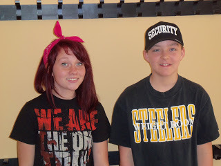 And, if all else fails... being cute kids. People LOVE kids! (Thanks Sam and Monkey) Notice his hat? He's mom's personal security when his daddy is not around ;)