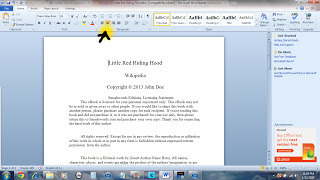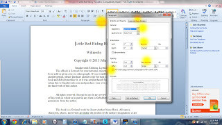 The highlighted areas show you the items that I spoke about in the video, on how to set up your document for Smashwords.