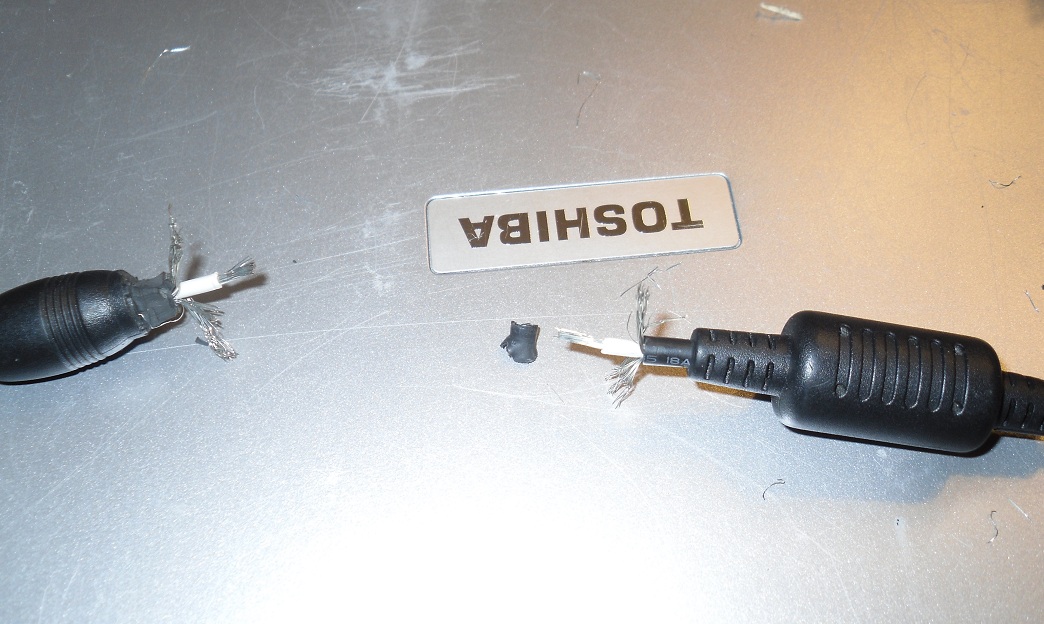 My old laptop cord broke and I had to splice it back together.