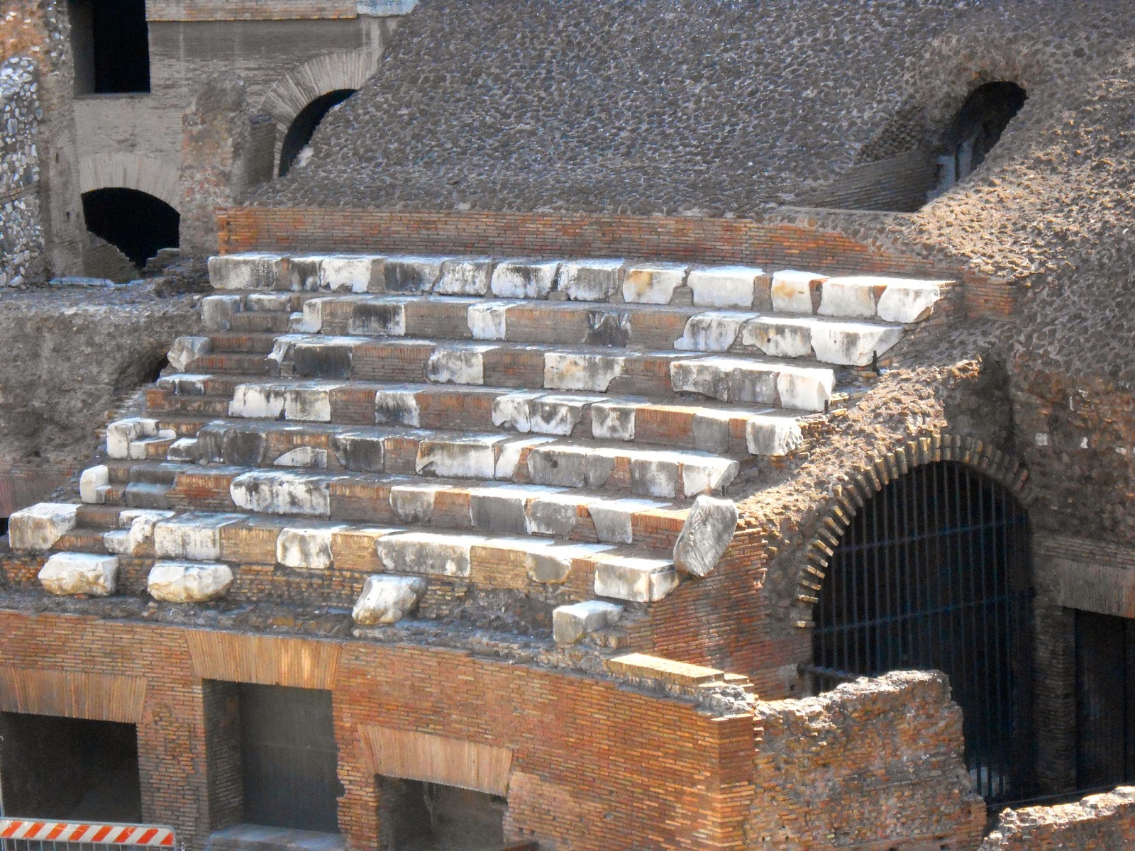 We were mesmerized with stories of the animals that fought in the Colosseum.The seating arrangement for events was pretty simple, the Emperor and his entourage had special seating. Everyone else- including women and slaves had general admission with the masses The steps were steep and slippery. Below is a section showing the original marble. .