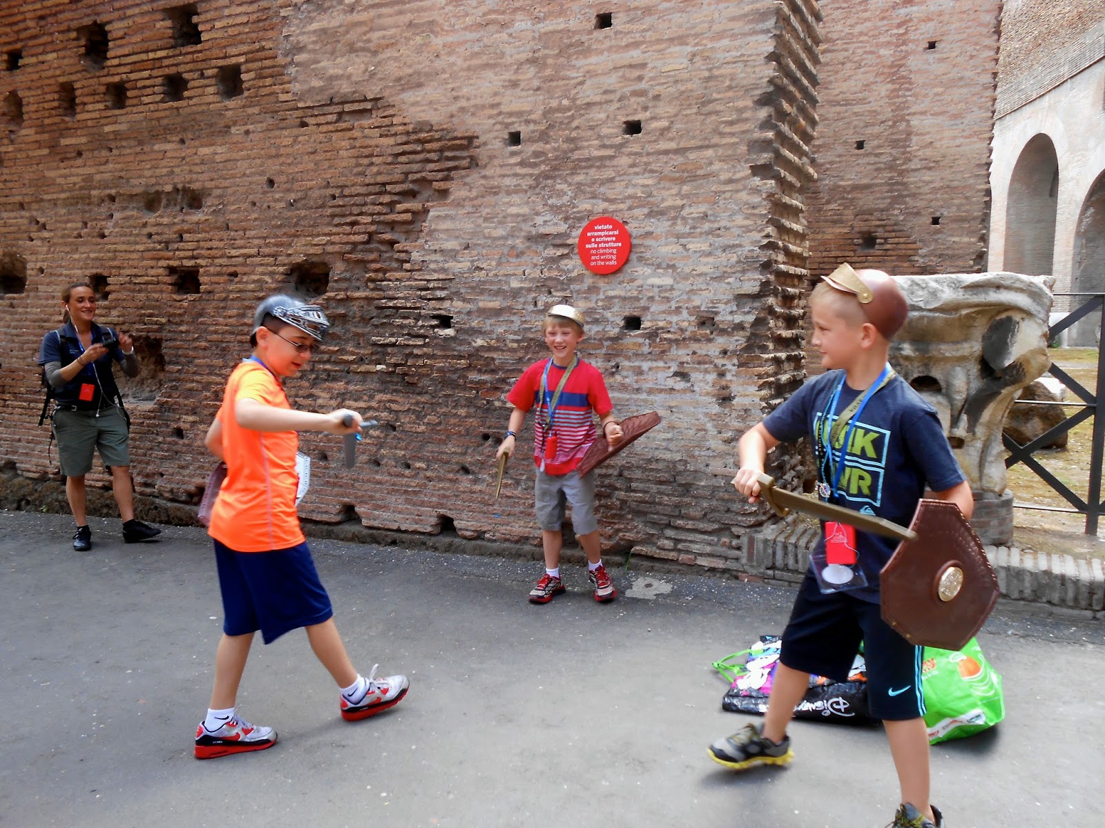 Junior adventurers got to burn off energy in a mock gladiator fight. Everyone must have thought it was part of the show. A large crowd gathered around them with their cameras and iPads.