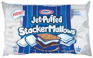 That's why I love s'mores. You can make one or dozens. They're compact and I can be as creative as I want with all the ready made ingredients. My personal favorite is made with 2 ginger cookies smeared with Nutella. I recently discovered a new Kraft product- marshmallow stackers. They fit perfectly between the thin ginger snaps.