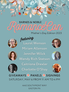 One of the things I’m looking ahead to is my book signing at Barnes & Noble in Easton, PA. I’ll be there on May 6 from 11-4 with several other romance authors. We’ll talk about our books, sign them, and lead panels on topics of interest to readers and writers. I’d love you to stop by—it’s a great way to prepare for the reading mothers in your lives!