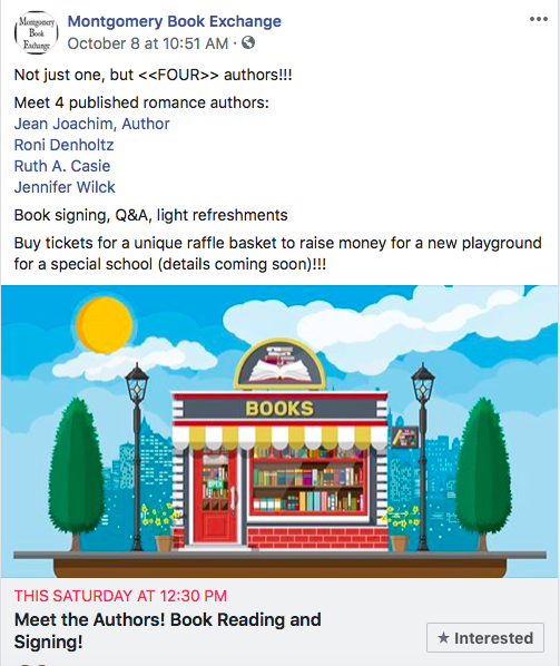 I was excited to see so many of the authors I know on social media but haven’t had the chance to meet in person. Authors are fun to be around, especially romance ones. We chatted and laughed with each other and with customers, and sold books! And, I made connections—both with the store manager, who will now invite me to other events, and with other writers, who will include me in events they find out about. So it was a great success.