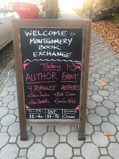The drive up north was beautiful—farmland and foliage, which would have been spectacular three weeks earlier. But the golds, oranges and browns were breathtaking. Montgomery is a quaint, Hallmark-type town that I want to explore someday when I’m not lugging a suitcase full of books. Walt, the owner, was so nice and professional and knowledgeable.