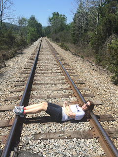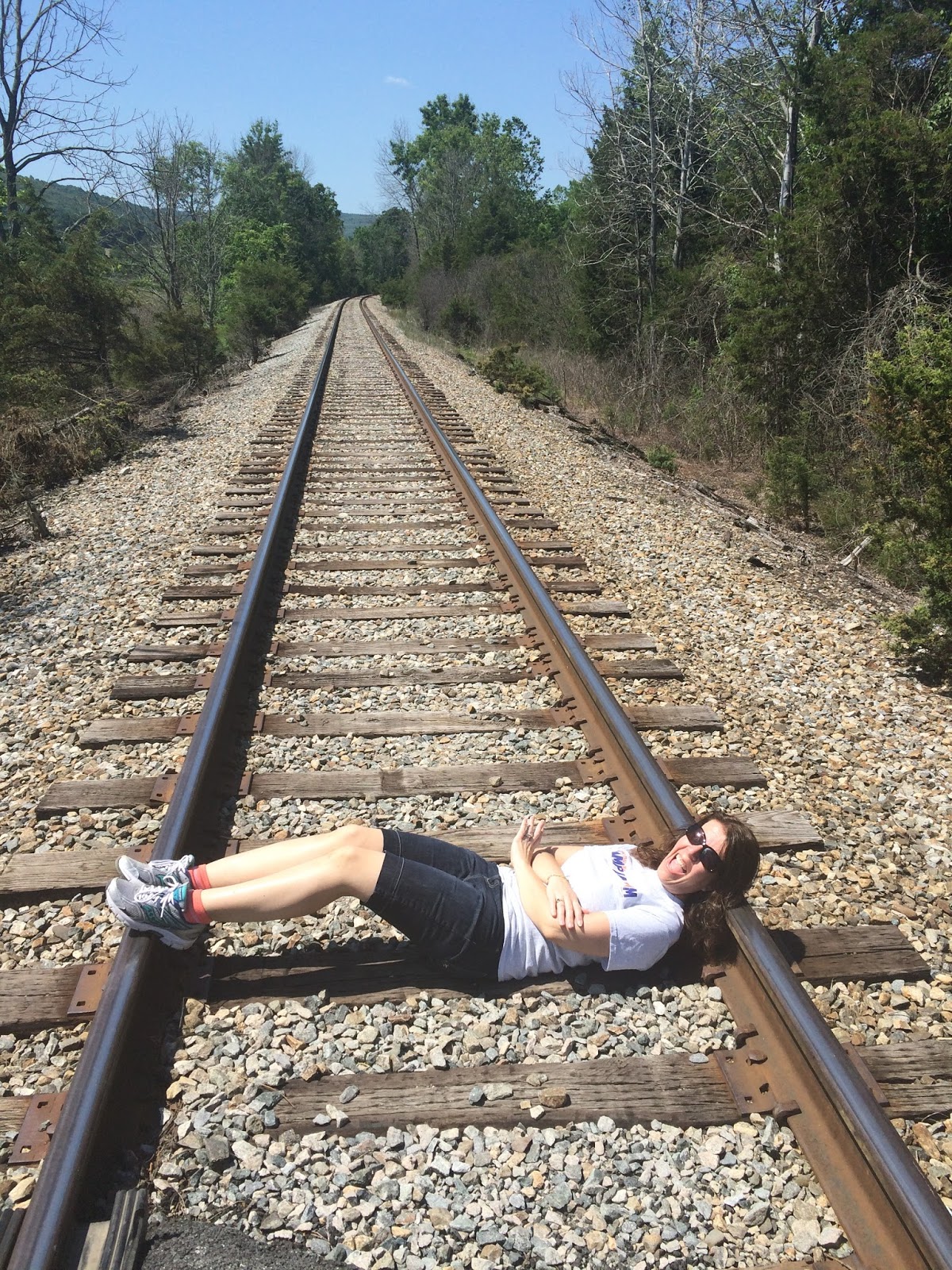 The worst part about it was the heat.They had benches strategically place so you could sit and rest. I’m not sure why you’d want to, as the benches were within the first mile of the hike, made of really splintery wood and in the blazing sunlight. There was not a spot of shade to be found, so sitting and sweating didn’t sound appealing. We kept walking. I sweated and thought about turning around, but that wouldn’t get me out of the sun. After an hour, we found a rock in the woods that was in the shade. Yay! My husband looked at the time and said we’d been walking an hour and asked if I wanted to stop. In the woods, with the temperature several degrees cooler, suddenly I didn’t mind continuing. Besides, he didn’t think it was a hike yet. Then we got to the train tracks.