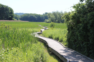 My husband and I went hiking on Saturday. I thought it would be a fun activity for us to do together while the girls are away. I have a warped idea of fun. We drove to Vernon and went on a seven-mile hike in the Wawayanda State Park, with the goal of climbing the Stairway to Heaven.I should have known from the name this was not going to go well.The hike started out easy—according to my husband, it wasn’t a hike, it was a "nature trail." And it was lovely. The trails were flat, some of them included walking on boardwalks over the marsh and there were even a few bridges to walk on—including a suspension bridge that was WAY less scary than the ropes course we did a few weeks ago (and from which my body has FINALLY stopped being sore, and most of the bruises have faded). I loved wandering through farmland and marshes and reminiscing about nature walks my great-uncle used to take my cousins and me on when we were little.