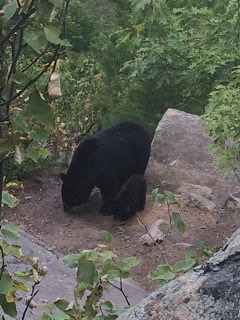 No matter how long we kept walking, it was 30 minutes. And we’d know we were close when we saw the “really big rocks.” Um, we were climbing up, around and over really big rocks. Lots of them. And we didn’t seem to get any closer.I thought I was going to die. Seriously. So I started planning my funeral, only to realize that if I died, my rabbi wouldn’t be able to officiate because he’s away at camp, and I’d have some stranger talking about me, who probably wouldn't get me or my humor. Except I probably wouldn’t care since I’d be dead. After the longest 30 minutes of my life, we finally made it to a fork in the trail that had a huge man-made pyramid of rocks (even I could tell we’d made it). There were people standing there talking about bears.Apparently, a mama bear and her anywhere from two to five cubs—depending on who was relaying the information—was at the top where the view was. The view that was the only reason we were on this damn mountain in the first place. There was no way I was turning around this close to the end. Not happening.So we waited until those people turned in another direction, because I didn’t want to have to deal with them and we headed toward the ridge. We didn’t see the bear. My husband said he didn’t want to end up one of those stupid people on the Internet (as of now, it’s probably too late). So we walked carefully. And I tried to remember all the tips from the "What To Do If You See A Bear" brochure hanging at the beginning of the hike. All I remembered was something about being loud--was I supposed to be loud or were bears loud? Because I didn't hear any bears, and I'm not really good at being loud. When we got to the ridge, the view was beautiful and we started taking pictures.