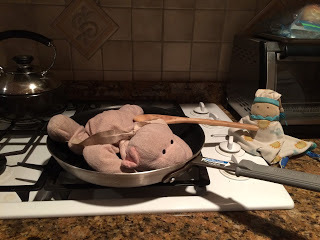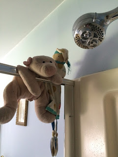 I started taking photographs. Both kids have guys they sleep with, and both kids left them home. So, stealing from the Elf on the Shelf friends, I have been posing them and photographing them. For Princess, who’s allowed to have her phone with her, I’ve been sending her “Fun photos of the day.” For Banana Girl, I’ve been printing and mailing them, in the hopes of eliciting some sort of response and maybe getting a letter in return.