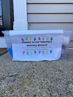 I love this idea! While we don’t get a ton of packages, especially now that the girls are gone, we do get some. And delivery drivers have been coming to my house through wind, rain, sleet, snow, and pandemic. I’ve often wanted to tip them for their service, but not all of them are regulars and I never know precisely when they would arrive (while I’m fine leaving food treats outside unsupervised, I’m less inclined to leave money outside—sorry neighbors).
