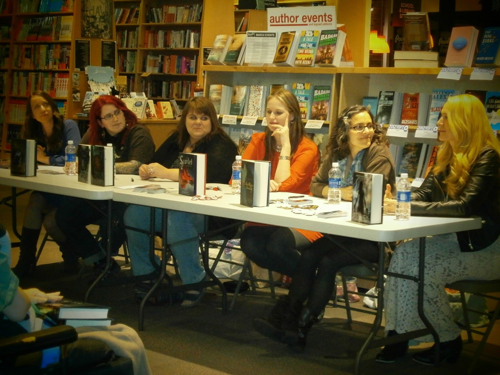 Last night I got the awesome chance to attend a book signing, full of super talented YA authors! Elizabeth Fama, Jessica Brody, Marissa Meyer, Lish McBride, Jennifer Bosworth, and Ann Aguirre all gathered for a night full of book gabbing, joke cracking, and fan girling.