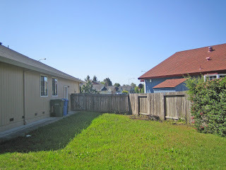 It's our side yard, currently an almost blank slate thanks to the fact that I spent all of last summer cutting down and digging out those 6-foot-square bushes you see to the right. Yes, that gigantic hedge went all the way around the fence line, so I had to get rid of them to make room for vegetables.