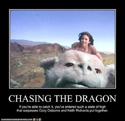 Still, I'm still gonna have to 'literary-ize' the place from time to time, but will try to chronicle and focus on my attempts at Chasing the Dragon, with more posts pertinent to those who are chasing their own dragons as well.
