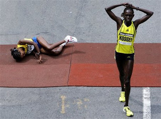 ... and of course, the reason that I know this is from all the times I have often been another runners victim, on the other other end, looking at runners with envy, with fear even, since they seem to have more energy, and I did everything I could not to let any exhaustion show on my face or my stride, because , if they find out how dead tired I am they will be energized, and strike the fatal blow. I have been passed with authority, and I have been passed with elbows dug into me, like some sort of Indy 500. Oh the mental games.
