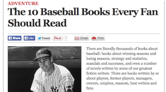 I love baseball. I love books. I love books about baseball. So Men’s Journal asked me to write about the latter. Writing the thing took less time than deciding on the list. Filling half of it was easy, and then there was careful deliberation between about 12 for the final spots. Still, great fun, great to re-read parts or passages, and reminds me that there will be BASEBALL next week!