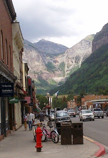 Telluride is built into a box canyon so the only way out of the place is the way you came in. But the views are wonderful. Every which way you turn you see a row of jagged peaks, or a colossal single mountain or a colorful row of red rimrock.