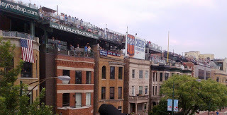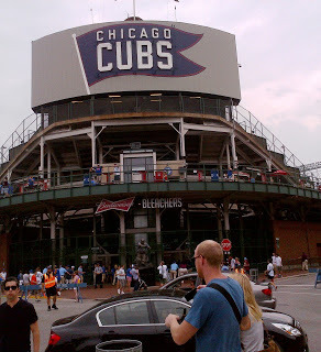 Dogs of course are not allowed on Chicago’s L (for elevated) transit system serving the stadium. Even if I got there, dogs are not allowed into the stadium. However, I can provide a report from various sources, none of whose reporting is as accurate or detailed as my own would be. Wrigley Field is the second oldest major league ballpark, opened in 1914. The oldest is Boston’s Fenway Park which opened in 1912. The L stops right beside the stadium and pours out thousands of people into the lively neighbourhood surrounding the park. Many crowd into Murphy’s Bleachers, the famous sports bar where patrons grab a beer and spill out onto the street. If you look up from the street you see an amazing example of American entrepreneurship. Bleachers have been built atop the stone and brick apartment buildings lining Sheffield and Waveland Streets. The bleachers look down in to the ballpark. You don’t need to buy a regular stadium ticket to see the game from there, but the people who own the outside bleachers charge a price for the novelty of watching the game from these perches. Inside Wrigley there is real grass and the outfield wall is draped in ivy. You are back in a different time, expecting a legendary player such as Babe Ruth to trot onto the field. There are hot dogs, pretzels and salted peanuts for sale. And, beer, of course. You need to get a pink wrist band to buy beer. It’s proof that you are old enough to purchase alcohol. They even made the Old Guy go to the pink band desk to show his age ID. Obviously, it’s not just the umpire who is blind here. Wrigley truly is a place of miracles. The lowly Chicago Cubs defeated the league-leading Pittsburgh Pirates 4-1. That's it for now.OZ