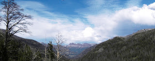We corkscrewed our way up to 9600 feet above sea level, getting stunning views of the Bighorn Basin Country below us. Up top we passed through broad green, and sometimes snowy, alpine meadows which graced us with little streams that gurgled a welcome to wade in and lap your fill.