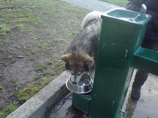 It's a regular park for families, but before 9 a.m. and for a while before dark, dogs are allowed to run here off leash. Water fountains, with the usual tap up above, also have taps near ground level for filling dog bowls, provided by some of the dog owners.
