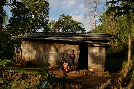Di Moni, kami nginap di sebuah losmen kecil yang menyenangkan. Namanya Hidayah. Di belakang losmen ini, ada sungai berair terjun. Paginya, saya langsung berjalan-jalan di aspal yang berkelok-kelok. Senangnya lihat anak-anak SD berangkat sekolah dengan latar belakang bukit-bukit hijau, kebun sayuran, dan permukiman penduduk. Kebanyakan rumah di Flores bentuknya persegi dengan dindingnya terbuat dari bambu disusun vertikal dan atap seng kaya gini: