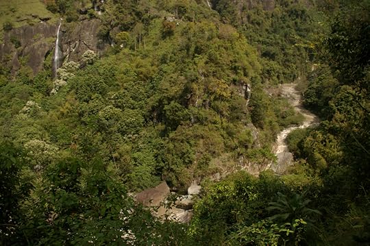 Pemandangan selanjutnya masih didominasi gunung-gunung hijau dan jurang. Sesekali ada sawah dan gerombolan rumah-rumah penduduk. Pemandangan favorit saya ada di di daerah namanya Kilometer 13 di Ende. Di kanan jalan ada jurang dengan barisan bukit batu tinggi ke atas. Di bukit tadi ngalir beberapa air terjun kecil. Air terjun-air terjun yang cuma ada pas musim hujan tadi jatuh sungai berlekuk-lekuk di dasar jurang. Cantik sekali. Kami berhenti sebentar buat foto-foto. Sayang, lensa kamera saya terlalu pendek. Hiks!