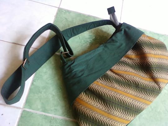 Pas buka-buka web tadi, aku naksir beberapa tas. Sayangnya, barangnya kebetulan lagi kosong. Ya udah, pas lewat di daerah Kotagede, aku mampir ke rumah mereka yang jadi showroomnya di Purbayan RT 58 RW 14 Kotagede Jogja. Setelah memilih-milih, akhirnya aku ambil tiga tas ini. Tadinya sih pengen tas lain juga, tapi cukup sekian dulu