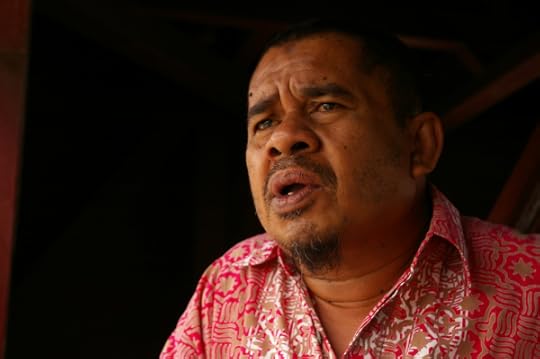 Turun dari pesawat, kami dijemput sopir rental untuk pergi makan siang di sebuah restoran di pinggir dermaga. Selama kami makan, ada 3 kapal kayu datang dari Pulau Besar bawa puluhan penduduk lokal. Banyak dari mereka mengenakan kain ikat yang warna-warni. Bikin ngiler pengen punya.