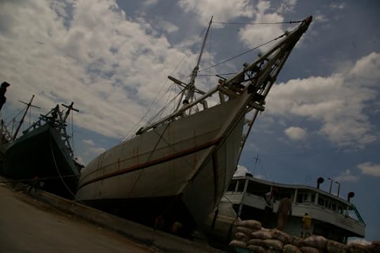 Habis itu, kami lanjut jalan kaki ke Pelabuhan Sunda Kelapa. Berhubung dah jam 11 an. Suasananya nggak terlalu ramai lagi. Hanya ada sedikit orang yang sedang menurunkan muatan dari kapal. Saya nggak betah banget deh lama-lama di tempat ini. Panasnya nggak nguatin juga debu beterbangan di mana-mana. Kayaknya kami kesiangan deh jalan-jalan di tempat ini.