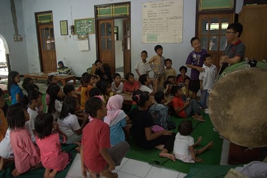 Berhubung saya butuh banyak teman untuk menjalankan perpustakaan tadi, saya mengajak teman-teman dari Komunitas Canting yang memang punya kegiatan sejenis di tempat lain. Ajakan saya untuk mengadakan perpustakaan keliling untuk anak di Desa Borobudur ternyata juga disambut baik oleh Anta dari Perpustakaan Guru Bangsa. Ia yang menjadi perantara kami untuk meminjam mobil perpustakaan keliling. Berhubung buku-buku perpustakaan keliling tadi kebanyakan bukan buku untuk anak, kami juga meminjam buku dari perpustakaan anak Yayasan SATUNAMA.