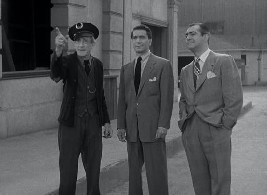 O’Brien’s obsession with Ferrara leads to encounters with various people, all of whom become sources of information and potential suspects, including O’Brien’s business partner Sam Collyer (Fred Clark), who thinks the film project is a bad idea.