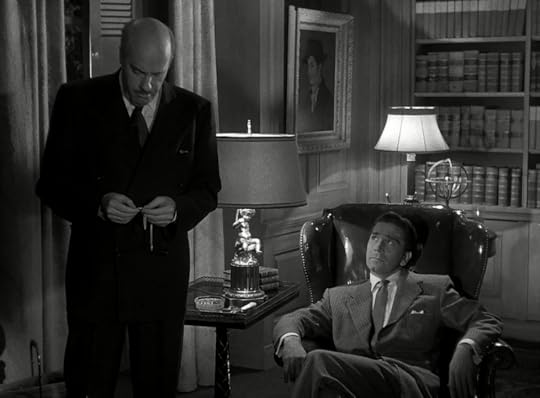 Casting Barry Kelley as a judge is something of a head-scratcher, but George Macready as District Attorney Kerman is a perfect choice, although the character is written primarily as a one-dimensional foil for Morton. Yet the courtroom scenes are the best parts of the film, including a nice interior voiceover as Morton examines the jury members, scenes with witnesses that are both comedic and intense, and a wonderful moment in which Kerman taunts Nick on the stand, calling him “Pretty Boy” while the DA fingers his own (real) facial scar.