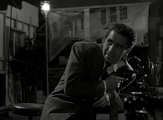 Richard Conte (center) plays Larry O’Brien, a New York producer who wants to transition to making movies in Hollywood. Thanks to his friend and publicist Mitch Davis (Jim Backus, right), O’Brien purchases an old studio that’s been vacant since the silent era. Once Davis leads O’Brien into the bungalow where the famous silent film director Franklin Ferrara was mysteriously murdered 20 years earlier, O’Brien knows he’s got his first picture idea: a documentary on Ferrara.
