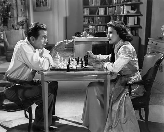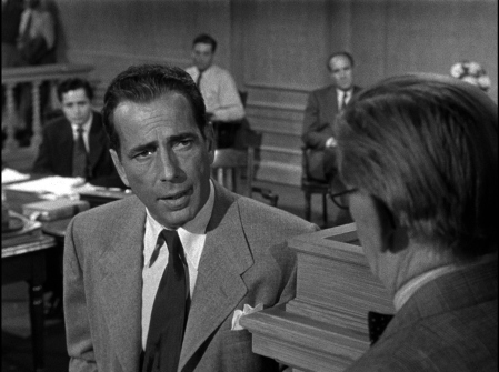 Cut to attorney Andrew Morton (Bogart) at home on the phone, turning down a potential client. Finishing his conversation, Morton sits down to resume a game of chess with his wife Adele (Candy Toxton, credited as Susan Perry). As the game continues, Morton tries to convince himself that turning down the case is the right thing to do. Although she never says a word, Adele apparently has the ability to change her husband’s mind simply by her presence. (We sense this isn’t the first time she’s done this. Or perhaps she knows he has to argue with himself before making final decisions.) Morton takes the client, which is, of course, Nick Romano.
