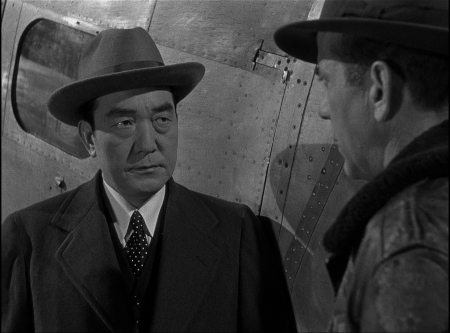 Joe understands that his 60-day visitor’s permit and lack of funds won’t give him adequate time to win Trina back, so he’s forced to set up a business that will keep him in Tokyo. An airline freight company would do the trick, but he needs financial backing. Baron Kimura (Sessue Hayakawa), former head of the Japanese police can back Joe financially, but that guarantee comes with a price. To tell you more would ruin the fun.