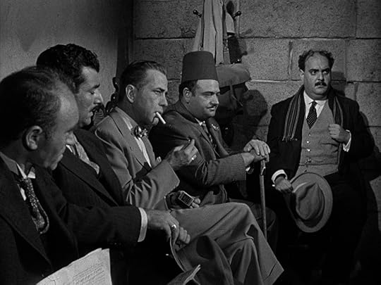 I’m sure no one reading this review will be surprised to discover that the gunrunner is none other than Humphrey Bogart, here as American black marketeer and gambling house operator Harry Smith. We the audience know this, but the French authorities don’t. Yet Smith draws attention to himself when, after Feroud accuses him and four other local food marketers of price gouging, Smith agrees to cooperate while the others balk at the colonel. Smith knows Feroud could simply confiscate the goods, but why shouldn’t Smith play ball and bide his time?