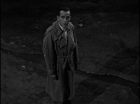 It’s an early Sunday morning in Gulf City, still too early for the sun to come up and nighttime activities to cease. A brightly lit sign boasts “Tropical Paradise of the South.” Few film noir locales can be called tropical, yet some of them seem to guarantee paradise. Gulf City, at least based on our introduction to it, fails to deliver on either promise. Rip Murdock (Humphrey Bogart) would no doubt confirm this failure of the city as he attempts to slip and slide through its rain-soaked city streets, avoiding contact with people, or perhaps trying to distance himself from the police.