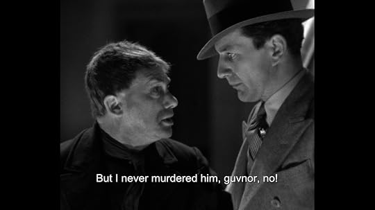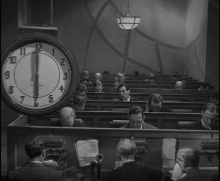 Hitchcock’s 14th film begins with a scene that calls to mind a film from just a few years later, Chaplin’s Modern Times (1936), treating audiences to shots of London office workers, working stiffs being herded like cattle as they file out of their office building like robots. Perhaps the scene was influenced by Fritz Lang’s Metropolis (1927)?