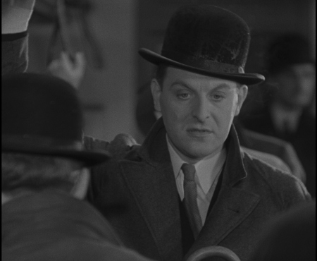 Noticing a light above and shadows from someone moving around upstairs, the man enters to find two men at the top of the stairs: one dead and one living, a homeless drifter named Ben (Leon M. Lion) who’s very much alive, talking, and agitated. Although he claims he didn’t murder anyone, we know Ben has something to hide and so does the man chasing his hat, who now introduces himself as Fordyce.