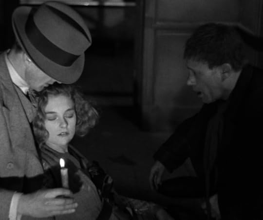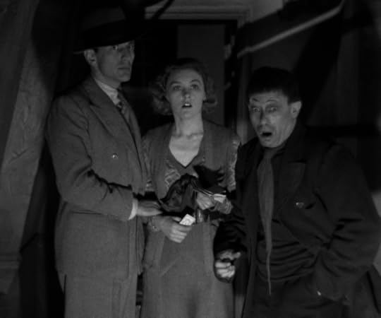 Oh, but there’s more. Three additional characters enter - a man named Brant (Donald Calthrop), his deaf-mute escort Nora (Anne Grey), and a man named Henry Doyle (Barry Jones), all here under the pretense of possibly purchasing the property. (Sure, I’m sure any realtor is willing to meet you at midnight.) And then a man named Sheldrake (Garry Marsh) shows up.