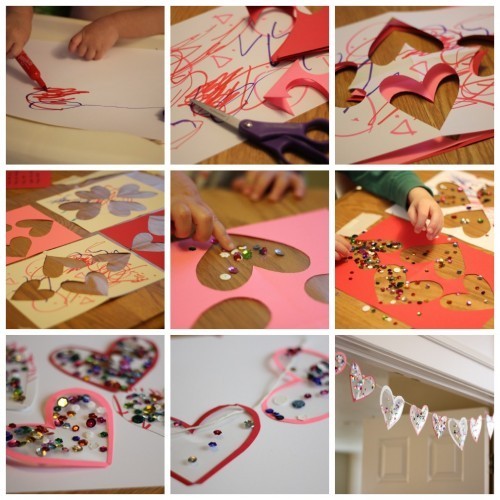This week we decided to add some color to our doorways by making some sparkly heart garlands to help us get ready for Valentine’s Day!