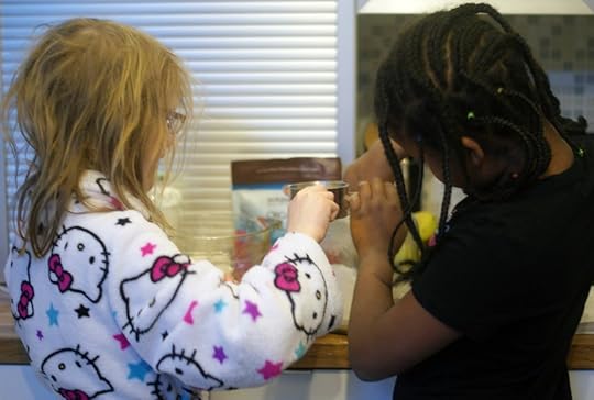It was really important to me that the girls—who came up with this idea on their own—be part of this process. They helped brainstorm toppings, spread the word, collect money and hand out cups of hot cocoa. We also sold instant hot cocoa packets, and we spent one evening assembling those together.