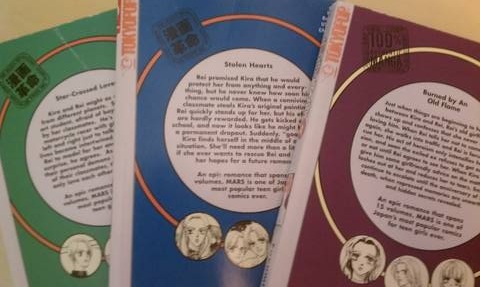 A few volumes of Mars - the back covers read 'Star-Crossed Lovers', 'Stolen Hearts' and 'Burned by an Old Flame'. I think it's obvious why I chose to pursue these instead of giving classes like government (blah!) my undivided attention. Years later, it still feels like time well-spent.