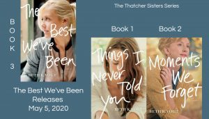 Curious about the Thatcher sisters? I invite you to meet them in Things I Never Told You (Payton’s story); Moment’s We Forget (Jillian’s story); and The Best We’ve Been (Johanna story), releasing this May.