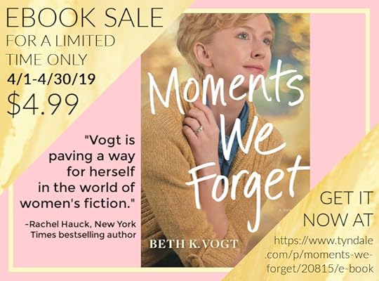 Moments We Forget released just over a week ago and I’m still celebrating. One Amazon reviewer said, “Beth Vogt has created a rich, poignant story about messy, authentic characters who are wrestling with challenging issues.” Don’t miss the opportunity to get the e-book for only $4.99.