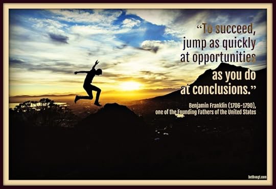 'To succeed, jump as quickly at opportunities as you do at conclusions.' Quote by Benjamin Franklin http://bit.ly/2NAy7va #success #perspective