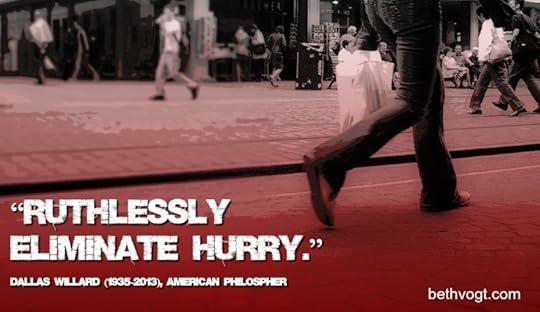 Dallas Willard’s statement is grand — Stop hurrying — and show no mercy toward anything that stands in your way of slowing down! — but let’s be honest with one another. Eliminating hurry from our lives is hard!