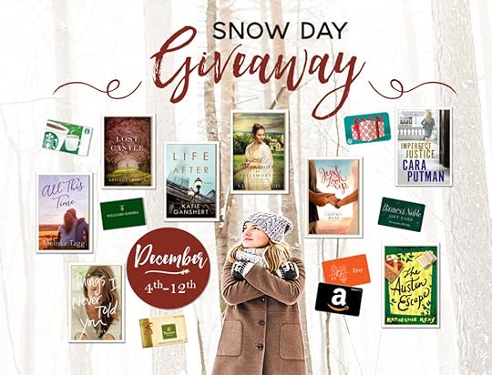 … a few weeks back (like in October), some dear author-friends and I decided to have a Snow Day Giveaway from December 4-12. I wanted to tell you all about that now so you had a chance to enter the giveaway for a chance to win the prize package worth $300. One reader will win all this: