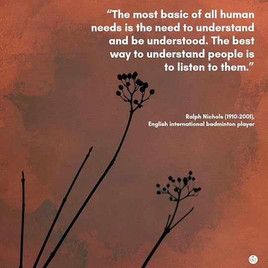 'The most basic of all human needs is the need to understand and be understood. The best way to understand people is to listen to them.' Quote by Ralph Nichols https://bit.ly/2YhgGqU #relationships #listen