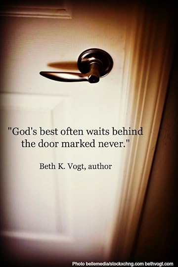 One of the approximately one bazillion things I love about Beth Vogt is a line I’ve heard her say many a time: “God’s best often waits behind the doors marked ‘Never.’”